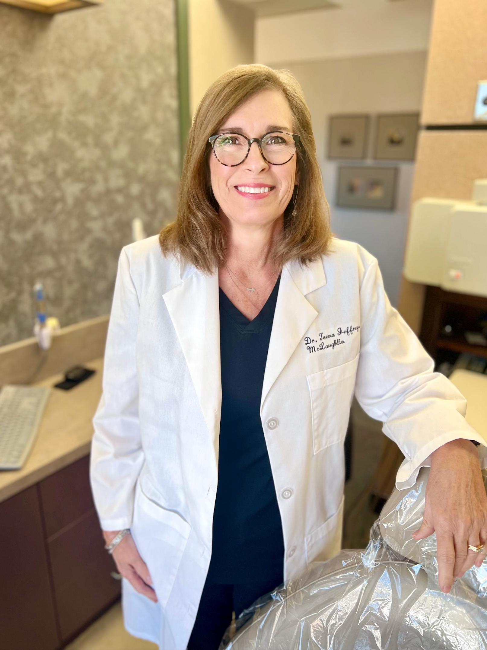 Dr. Teena Jeffreys McLaughlin's journey in dentistry is marked by a series of pioneering achievements and a deep-rooted passion for the field. Growing up in the Shoals area and graduating from Colbert County High School in 1981, she pursued a Bachelor's degree in Biology from the University of North Alabama, graduating in 1986. Her exceptional talents and dedication led her early into the University of Alabama in Birmingham Dental School, where she graduated in 1989. Not only did she become the first woman dentist in the quad cities by opening her practice in Florence, but she also showcased her versatility and commitment by mastering every aspect of dental office operations from an early age. Dr. McLaughlin's extensive experience, from dental assisting to managing insurance and bookkeeping, has made her a well-rounded professional and a mentor to many aspiring dentists, especially women in the field. Her passion for dentistry is paralleled by her dedication to community service, reflected in her active membership in various dental associations. Along with her husband, Dr. Jeffrey McLaughlin, and their three children, she continues to contribute to the Florence community both as a dental professional and a committed resident.